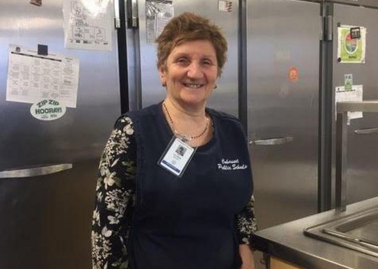 They probably don't know she cooks three times each day - a fresh batch of the day's offerings for each grade level - rather than cooking once and letting it sit and get mushy. Or that she makes extra items not printed on official school menus (homemade chicken noodle soup on a recent winter day) because she wants everyone to find something to eat. She cooks around 135 lunches daily, assisted by Joanne D'Elia and Josephine Marascio.