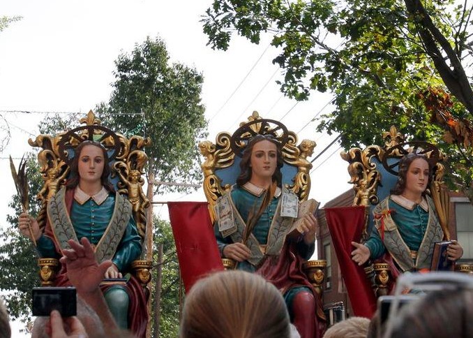 Opening night of the annual Feast of the Three Saints drew hundreds of people to this city of many cultures. For nearly a century, Corpus Christi Parish at Holy Rosary Church, at Essex and Union streets, has hosted this celebration that honors three young Sicilian men, Saints Alfio, Filadelfo and Cirino, who chose to be tortured to death rather than renounce their allegiance to Jesus Christ.