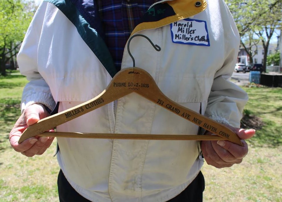 “Anybody have a guess?” Laura Parisi asked, brandishing a a metal artifiact of the old Grand Avenue. Parisi, president of the Italian-American Historical Society, brandished the artifact — a “cutter” — and challenged members of the crowd to identify its use as she joined heads of four other local historical societies in Lenzi Park on Jefferson Street Monday to mark the completion of a new “Walk New Haven” tour book and online guide through the surrounding neighborhood’s history.