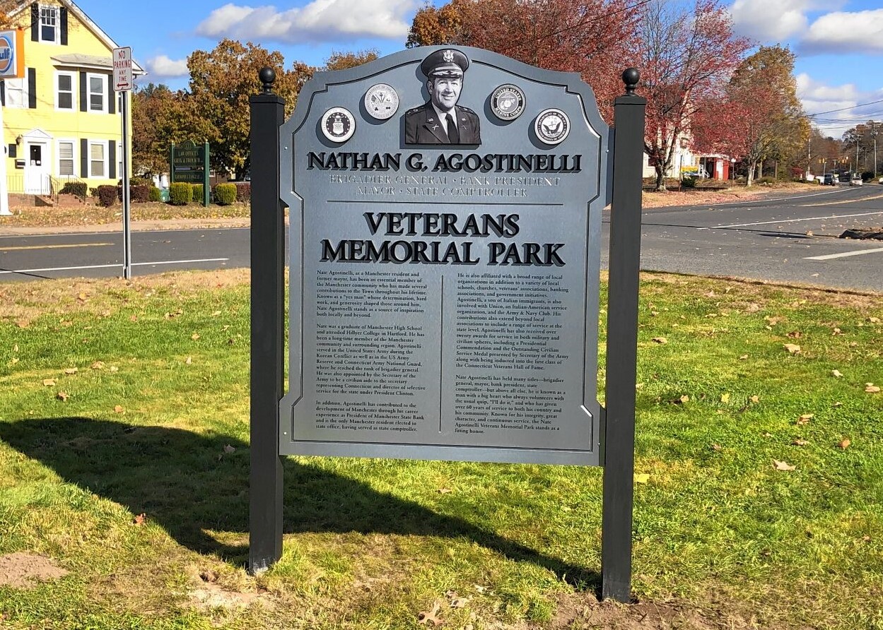 On Wednesday UNICO, in partnership with the town of Manchester honored Manchester resident and former mayor Nathan Agostinelli with the renaming of Munro Park to the Nate Agostinelli Veterans Memorial Park. Munro Park is located at the intersection of Porter and East Center Street. The community is invited to attend.