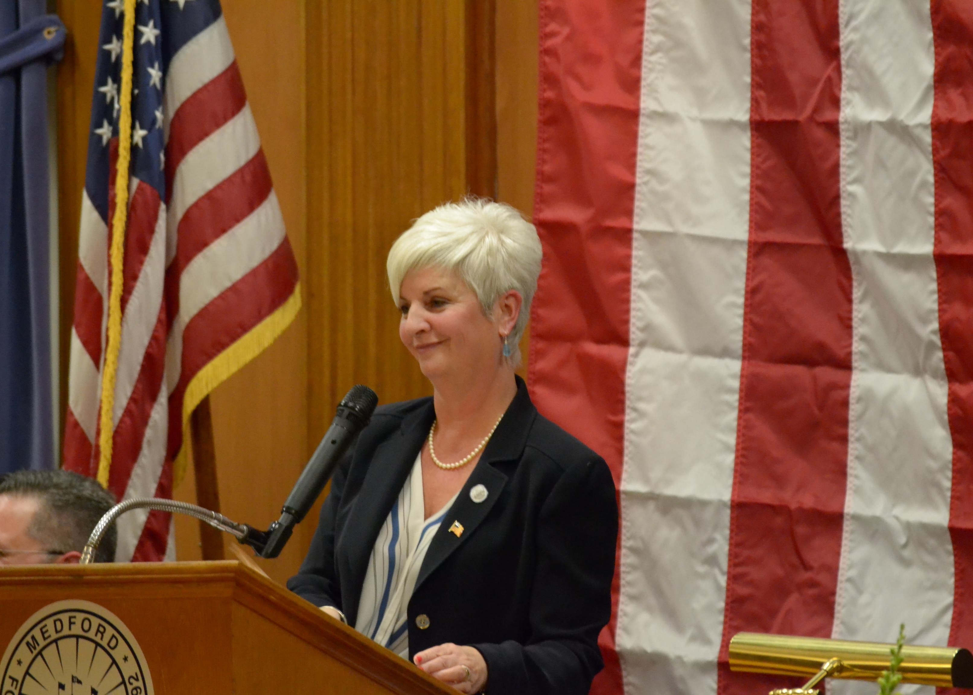 MAITAPO President Martin Gabriella said, “I am so very proud to present Mayor Stephanie Muccini Burke with the prestigious Guglielmo Marconi Award for outstanding contributions in public service and safety. Her commitment to building a new Headquarters for the hard-working officers of the Medford Police Department is admirable.” The Massachusetts Chapter of the national organization is in its 49th year with more than 400 members.