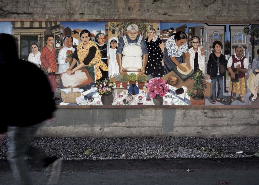 One mural features a Russian couple who founded a local liquor store empire with a Dominican man who owns an electronic repair store. Another depicts an Italian catering company owner and a Mexican community activist. The works of art also include a quote translated into Spanish, Italian, Yiddish and other languages: "You will always be welcome in the city of Boston."