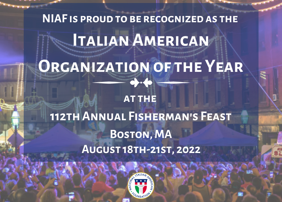 The National Italian American Foundation is honored to be recognized as the Italian American Organization of the Year by the Madonna Del Soccorso Society. This annual award is presented at the Fisherman’s Feast to an individual or organization that has had a substantial and positive impact on our society and the larger Italian American community through their efforts to preserve and support our Italian American heritage and culture.