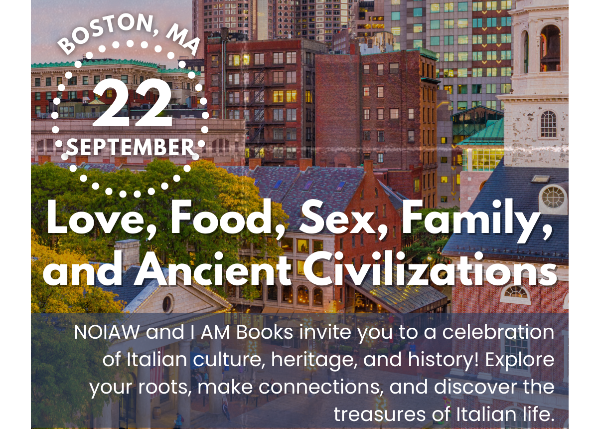 Thursday September 22, 2022 — 6:30 p.m. EST. I AM Books, 124 Salem St., Boston MA 02113. Register Here. NOIAW (National Organization of Italian American Women) and I AM Books invite you to a celebration of Italian culture, heritage, and history.