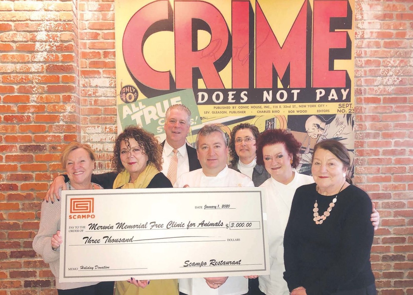 Scampo in Beacon Hill donated a portion of the proceeds from December desserts sales to the Merwin Memorial Free Clinic for Animals today. The Italian restaurant, located inside the Liberty Hotel, raised $3,000 to go towards this wonderful organization. On Feb. 4, Scampo presented a $3,000 check to Merwin Memorial Free Clinic for Animals.