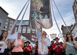 Today's 10-hour grand procession kicks off at noon and will feature a statue of St. Anthony winding through the streets with more marching bands,