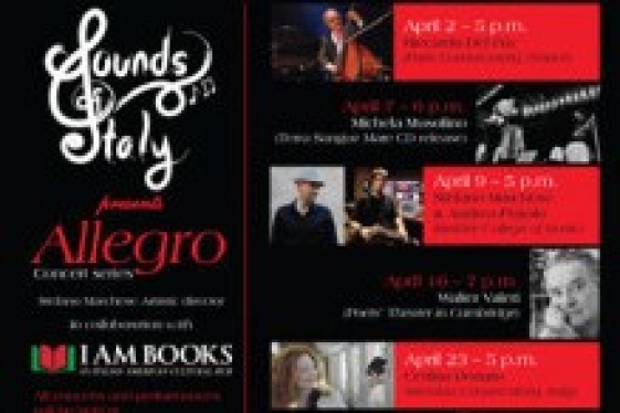 Starting in April, Sounds of Italy Festival will be roaring back with a two-month-long concert series that will showcase some of the best Italian talent currently living and performing in the Boston area, as well as important guest artists from Italy. Co-organized and hosted by I AM Books, the country's first Italian-American bookstore, the concer...