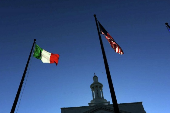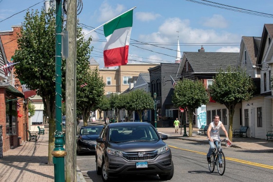 Italian flags again line Center Street in time for the Italian-American Festival this weekend. While the flags hanging from town-owned lampposts were prohibited by a recent ordinance and had to come down, they were instead hung from utility poles with approval from Eversource. In April, the Town Council passed an ordinance prohibiting non-governmen...