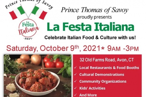 Sat, Oct 9, 2021 at 9:00 AM. 32 Old Farms Rd, Avon, CT, 06001. Save the date for La Festa Italiana, at Prince Thomas of Savoy, featuring Italian food, Ricotta & Limoncello making and other cultural demonstrations. Bring the family and come celebrate all things Italian. La Festa Italiana will feature tasty treats from Andy's Italian Kitchen, BeanZ &...