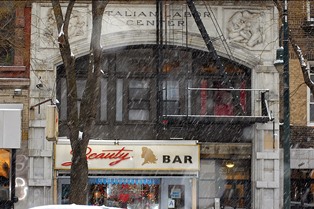 Thanks to Ephemeral New York, I discovered that the old marble sign and bas reliefs are attributed to the sculptor Onorio Ruotolo (1888–1966), nicknamed the "the Rodin of Little Italy." The building, now home to Beauty Bar, was once the headquarters for the Italian Labor Center and Cloakmakers Union in the now long-gone East Village Little Italy.
