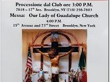 The procession, organized by Club Carinesi D'America, will begin at the society's clubhouse (7618 17th Avenue, Brooklyn, New York) and make its way through the neighborhood for Mass at Our Lady of Guadalupe Church (15th Avenue and 73rd Street, Brooklyn, New York).