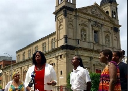 Assemblymember Latrice Walker, at the microphone, calls for a halt to Our Lady of Loreto's demolition.Assemblymember Latrice Walker, at the microphone, calls for a halt to Our Lady of Loreto's demolition. "Partner with our neighborhood," Walker said. "Let's invest in the people in this community as well as its infrastructure." Last week, Catholic Charities Brooklyn and Queens CEO Msgr. Alfred LoPinto announced "there is no viable use for the structure" and it will be torn down "to provide housing for families in need."
