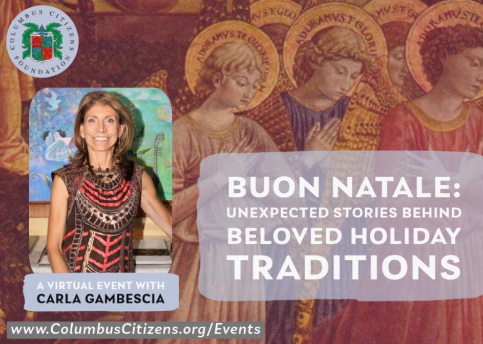 Join us on Sunday, December 19 at 4PM and discover the surprising stories behind our most cherished traditions from Saint Nicholas and the Nativity to candy canes and Christmas stockings. Award-winning author, lecturer and photographer, Carla Gambescia will guide us through the stories behind our holiday festivities! RSVP Here. This event is FREE to Columbus Citizens Foundation Members. A Zoom link will be shared in advance of this special presentation.