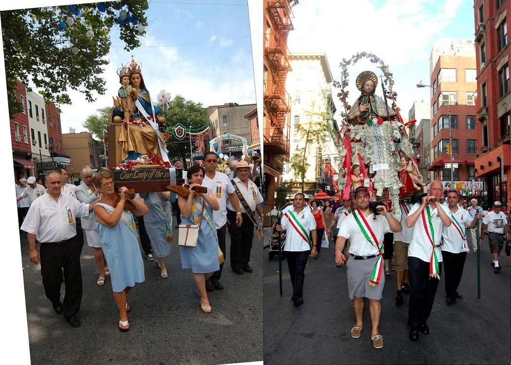 Sponsored by Jean Pignatelli, the Missa Cantata (or Sung Mass) was celebrated by Fr. Christopher Salvatori, who spoke glowingly of the 100 plus year tradition in East Harlem and fondly recalled his own pilgrimage to the Santuario della Madonna Incoronata in Foggia, Puglia. Following Mass, Cav. Sant’Elia and I had the great honor of presenting the large painting of the Madonna Incoronata to the congregation for veneration. We then carried the sacred image in procession back to her chapel at the front of the church. Evviva Maria!