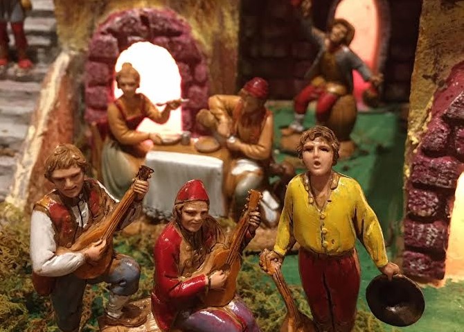 While a presepe will always include figures of Mary, Joseph, and the infant Jesus, many nativity scenes surround the holy family with elaborate reenactments of traditional or contemporary life, complete with local buildings, streets, and pastimes. Presepi such as these are not just dioramas picturing a legendary event from ancient Palestine, but are mirrors of the known world.