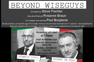 The Westchester Italian Cultural Center presents a very special screening with some extraordinary guests join us on Friday, May 16 for the presentation of Beyond Wiseguys the documentary portrays the saga of how Italian Americans transformed themselves from "outsiders"- stereotyped by the Hollywood establishment as mobsters - into industry insiders and a creative force to be reckoned with. Directed by Steve Fischler - executive producer Rosanne Braun - co-producer and narrator Paul Borghese.