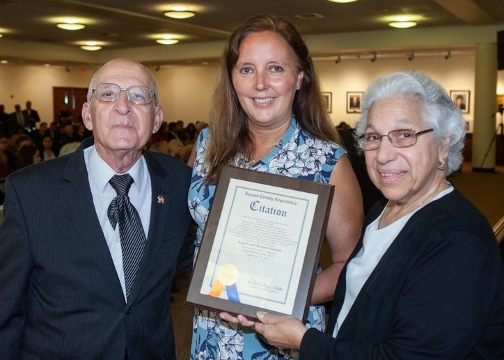 Nassau County Legislator Delia DeRiggi-Whitton recently honored Angelo and Kathryn Grande for their decades-long work in helping to preserve Italian heritage and culture. The Grandes have been active members of the Order Sons of Italy in America Loggia Glen Cove #1016 for more than 40 years.