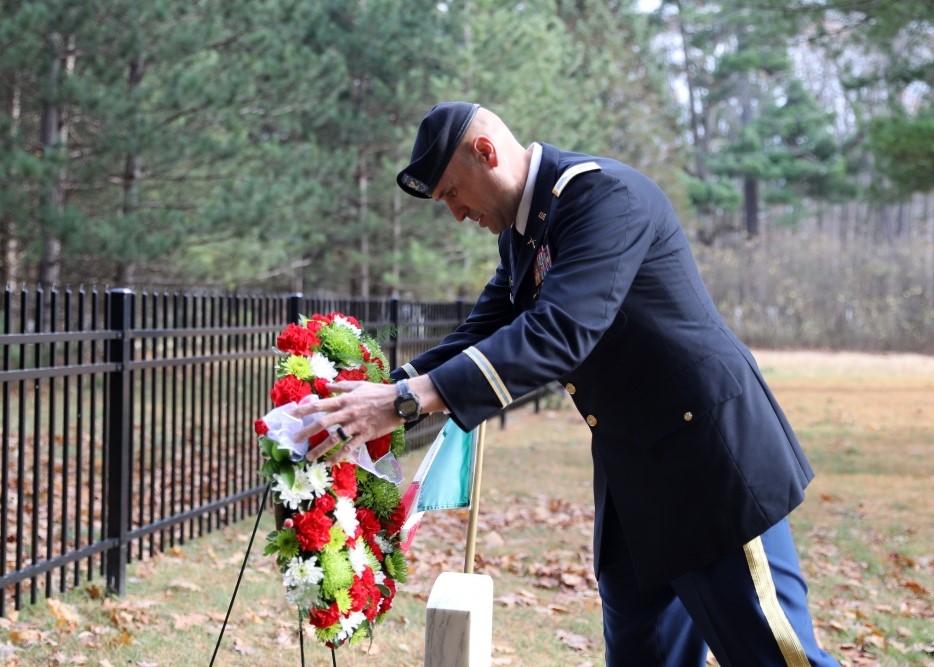 In celebration of Italy’s National Unity Day and Armed Forces Day, Col. Brian Sullivan, chief of staff of the 10th Mountain Division (LI), placed a wreath at the grave of World War II Italian soldier, Pvt. Rino Carlutti, Nov. 4 at the Prisoner of War Cemetery on Fort Drum, N.Y.