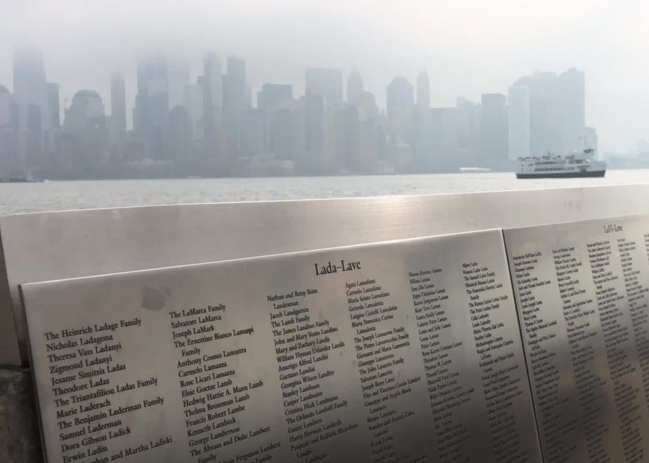But on a nearby panel, reflecting the Upper New York Bay and the shapes of visitors in its stainless steel, are the names "Topiltzin and Angela Martínez Family" from Honduras; "Teresa and Rosa E. López" from Puerto Barrios, Guatemala; and "Jaime F. Hernández" from El Salvador — immigrants who did not disembark on Ellis Island, but are memorialized for posterity nonetheless.