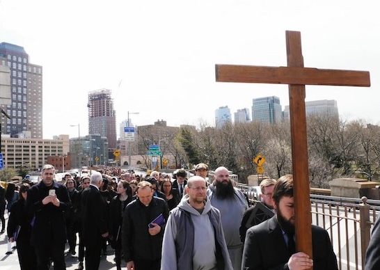 The Most Rev. Nicholas DiMarzio, bishop of Brooklyn, led the faithful as they carried crosses and statues, symbolically walking the path of Jesus toward crucifixion. Along the journey, participants prayed in Italian while moving through the 14 Stations. Meditations at each station reflect on what happened to Jesus from the moment he was condemned to death by Pontius Pilate to his burial.