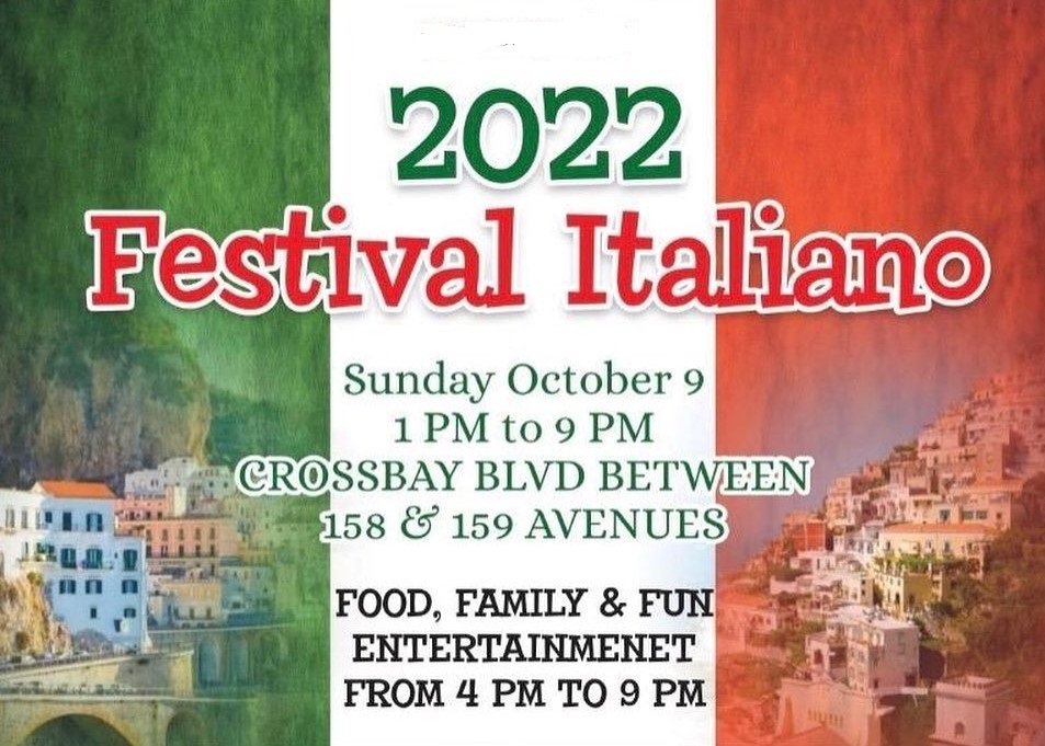 Instead of a parade, the Festival Italiano will take place this Sunday, Oct. 9, on Cross Bay Boulevard between 158th and 159th avenues. The boulevard will be closed for music, entertainment, food and more. It will begin at 1 p.m. when restaurants will be setting up food and then the music will go from 4 p.m. to 9 p.m. The masters of ceremonies will be radio personality Joe Causi and singers Carmelo Raccuglia, also known as “The Pizza Dude,” and Enzo Venuto.