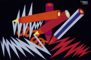 He had been commissioned four subjects: "Pencil Factory", "The Pencil-animal", "The Pencil-man" and "Bundle of colored pencils". But finally the artist did not consider the fee satisfactory and took his drawings back, deciding to look for better clients.