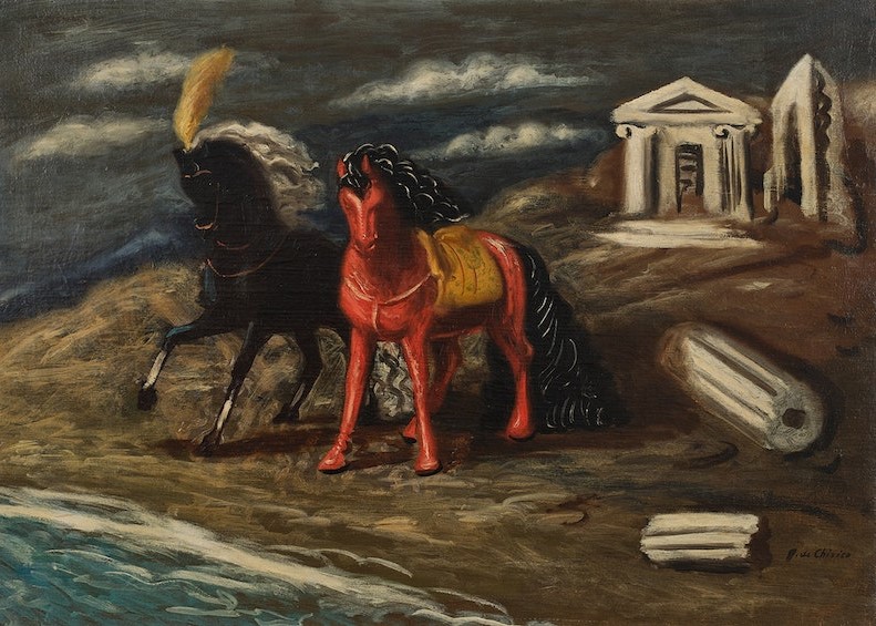 Vito Schnabel Gallery. 43 Clarkson St #1A, New York, NY. It’s usually too soon to write off what might seem, at first glance, a great artist’s less compelling work, as these small paintings would make abundantly clear if nothing else did. For more than a hundred years, Giorgio de Chirico has been revered for the so-called metaphysical paintings he made before, during, and right after the first World War.