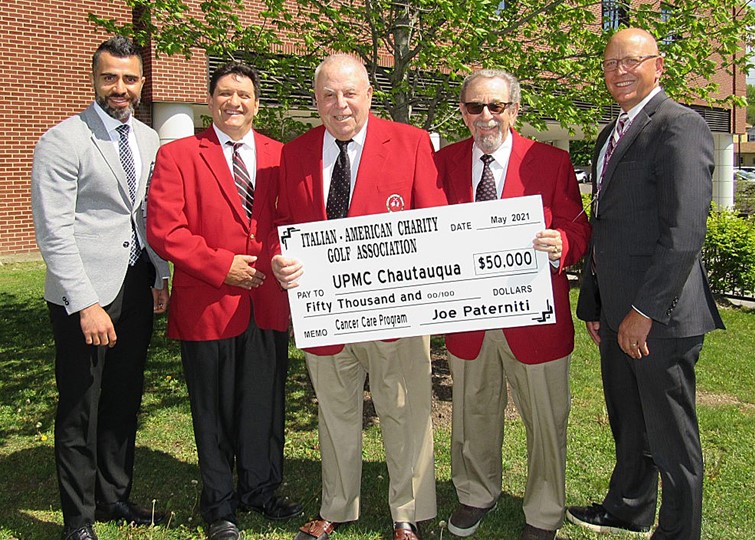 The 50th Italian-American Charity Golf Tournament will be held June 10-12 at Holiday Valley Resort. Above are members of the IA Committee with their $50,000 check, the last of a three-year installment for $150,000 toward an infusion room at Hillman Cancer Center.