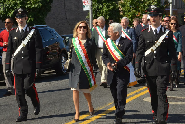 Sotto un cielo azzurro che nella nottata aveva cacciato altrove il maltempo dei giorni precedenti, la parata è partita sulle note degli inni nazionali americano e italiano, per avviarsi lungo Steinway Street, solitamente molto affollata di gente e di traffico per lo shopping del fine settimana.