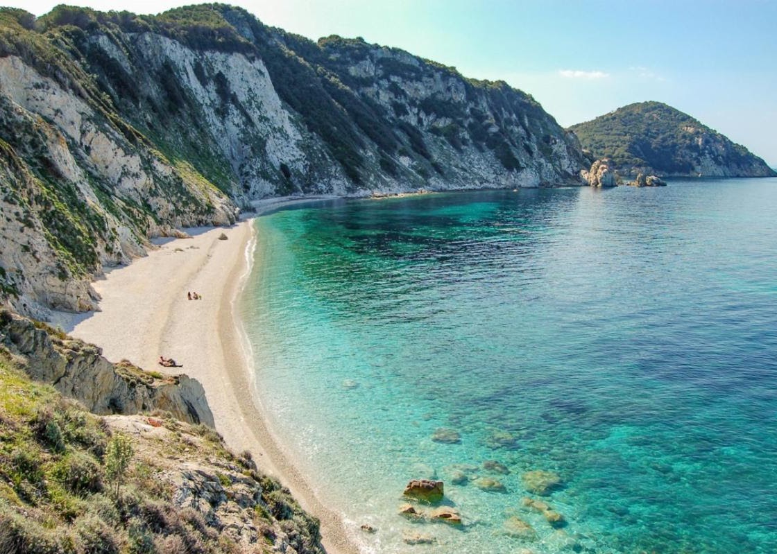 Spiaggia di Sansone on Tuscany’s Elba Island has a shallow shoreline that attracts families and snorkelers.