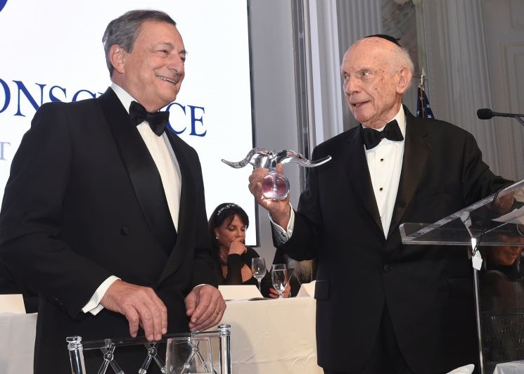 The foundation's president and founder Rabbi Arthur Schneier presented Draghi with the prestigious award during a gala ceremony in New York on Monday night, in honour of "his long-time multi-faceted leadership in finance and public service that has benefited Italy and the European Union and has helped international cooperation."