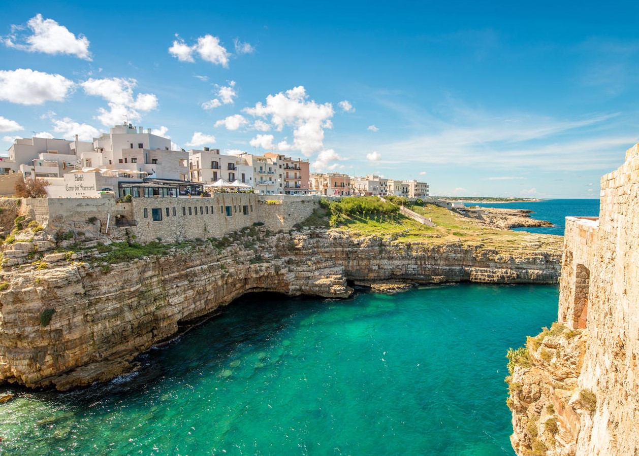 PUGLIA has everything: Castles, Forts, Lighthouses, an abundance of seascapes in rainbow colors, beaches and rock formations, caves and arches formed over millions of years, olive groves with trees whose roots are over 1000 years old. It has landscapes and gardens and flowering trees along roadsides, blinding white limestone buildings and sunshine that makes the colors of the flowers look brighter and deeper than anywhere else!