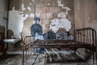 JR's commemorative murals draw inspiration directly from historic photographs from Ellis Island's hospital archives. From broken windowpanes to peeling, whitewashed walls, young, bonneted children stare longingly while eager nurses crowd together with nervous expectancy. Through these ghostly group portraits, the haunting hospital's framework is becomes a visual, visceral lesson in national history.