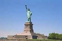 Standing on her concrete pedestal base, she rises to a neighborhood of 305 feet. Under her huge feet are broken shackles representing Liberty's victory over tyranny. Lady Liberty needs her mighty dimensions to hold a 23 foot high cement tablet in one hand; the "Torch of Freedom" high above her head, in the other hand, and the hopes and dreams of millions, upon million, of immigrants cradled in her bosom.