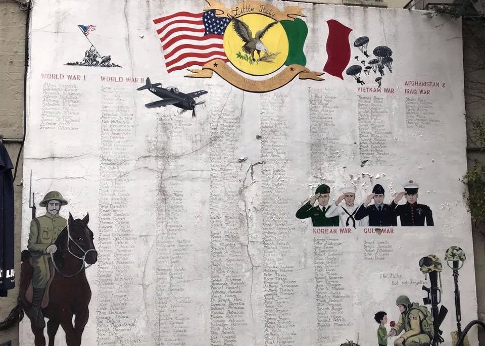 The memorial art wall is a painting. Its on stucco, and has aged and has many cracks, it may be impossible to remove. It has extensive fading and peeling. No record of the original names exists as far as I know. Some have said that at the minimum there should be some type of recorded history of it in photos and text. Perhaps an exhibition can be held or a re-creation of the Little Italy Memorial Wall can be Place somewhere else in an appropriate medium. Once the property that it faces on 109-111 Mulberry Street is sold, this vision, this memorial will be gone.