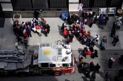 Students gathered at the corner of Washington Place and Greene Street to commemorate the 103rd anniversary of the Triangle Shirtwaist Factory in an event sponsored by Workers United, Remember the Triangle Fire Coalition and the Service Employees International Union.