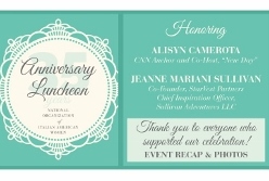 "Since our founding in 1980, NOIAW has supported and inspired Italian American women," said Maria Tamburri, NOIAW Chair. "As we celebrate our 35th anniversary, we are extremely proud to have honored Alisyn Camerota and Jeanne Mariani Sullivan, two women of the highest caliber and distinction. Alisyn and Jeanne join a long list of distinguished NOIAW honorees, including our founding member, the late Hon. Geraldine A. Ferraro; Lidia Mattichio Bastianich; Lisa Lemole Oz; and many more."