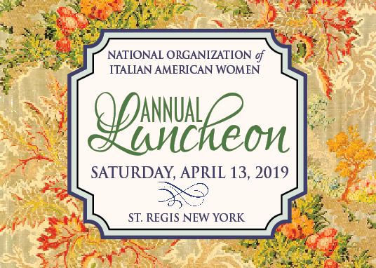 Saturday, April 13, 2019, the National Organization of Italian American Women (NOIAW) will hold its annual Gala Luncheon at the St. Regis in Manhattan, Two East 55th Street At, 5th Ave, New York, NY 10022. In addition to honorees Sandra L. DePaolo and Judith A. Salerno, NOIAW will also honor the John D. Calandra Italian American Institute with its Friend of NOIAW Award. Click here to buy you ticket!
