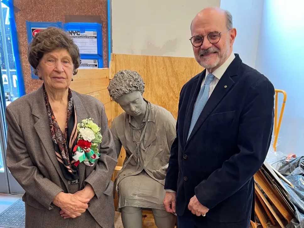“Growing up I always knew there was this statue of my grandmother when she was a New York City seamstress. I was always curious about it,” told her granddaughter, Jennifer Pulsone Heppner. The now-retired nonagenarian got to see the statue - which captures her in the act of sewing with a look of firm concentration on her face - at a ceremony at the Mulberry Street museum Wednesday.