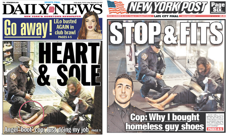 On a freezing November night in Times Square, Officer Lawrence DePrimo was manning a post at W. 44th St. and Broadway when he spotted an older, barefooted homeless man. The officer asked the man if he had anything to put on his feet. "It's okay, sir, I've never had a pair of shoes," the man replied. "But God bless you."
