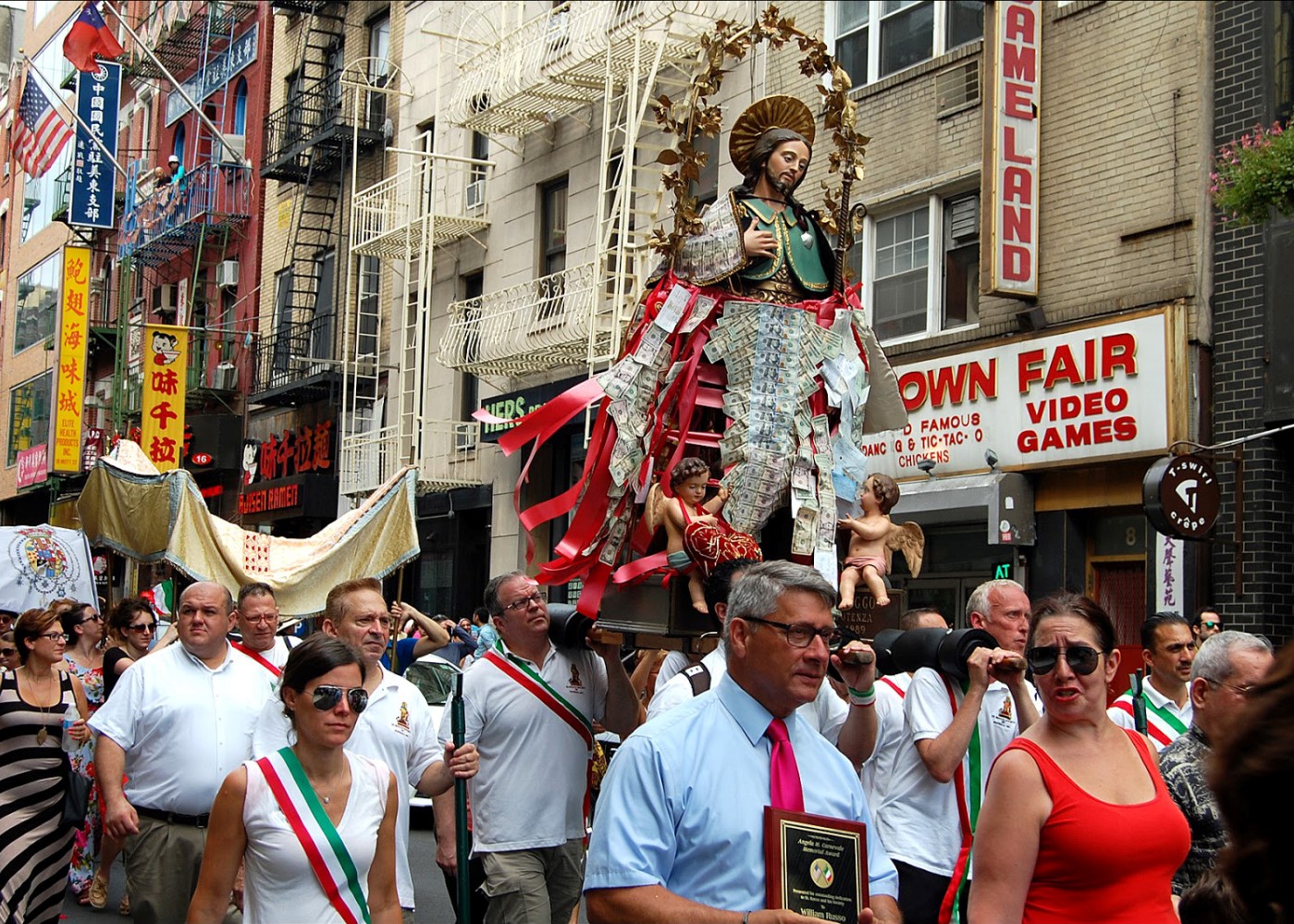 As the feast season is upon us, one must look at one of the oldest living feasts in New York City and the oldest in Manhattan, the upcoming feast of Saint Rocco. A preservationist’s dream, the feast of Saint Rocco maintains uninterrupted for 129 years due to the vigilance and devotion shown by the Saint Rocco Society of Potenza, which was established in 1899. Each year, Saint Rocco’s Feast Day is celebrated on August 16th. This year, the feast will be celebrated on August 19th.