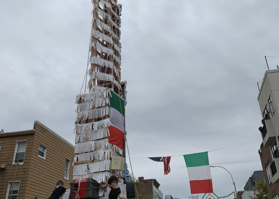 The Giglio Boys of Williamsburg along with their friends from East Harlem, Franklin Square Long Island and more Italian men from other varied Italian enclaves throughout the tri-state area, were able to assemble a Giglio and dance it despite the challenges posed by one of the most intense years in American history, 2020. Since 1903, the Italian men of Williamsburg have crafted a multi-story wooden structure with ornate carvings of Catholic saints that weighs thousands of pounds.