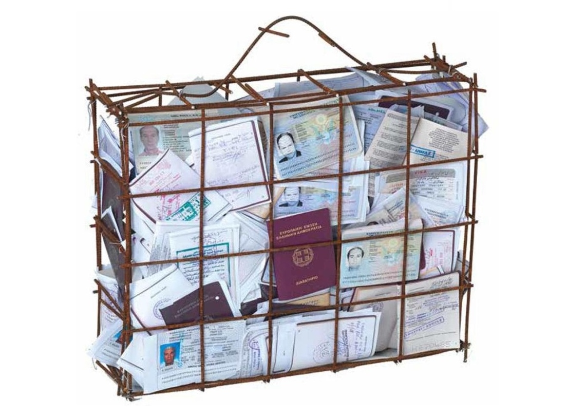 Yorgos uses materials of the earth to bring a tactile feel to his work thus engaging us on the journey. Suitcases made from wire, actual blankets and life vests used by immigrants amidst concrete, stones, sand and sea salt draw the viewer closer to the earth and the humanity of people who risked everything to start a new life.