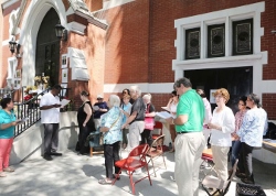 Parishioners kept the faith Saturday at Our Lady of Peace Church — holding mass outside of the locked church in defiance. The church, at 239 E. 62nd St., was shuttered on July 31 as part of the archdiocese's initiative to merge 112 parishes to create 55 new ones.