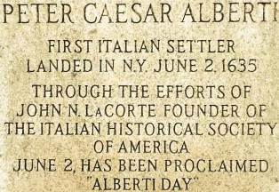 The New York City Department of Parks & Recreation has donated a granite marker honoring Peter Caesar Alberti, the first Italian American immigrant, to the Italian American Museum in New York's Little Italy.