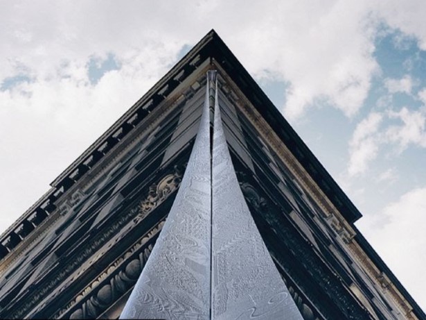 The Memorial will be visible to the public for the first time on Wednesday. Visitors will be presented with a textured, stainless steel “ribbon” twelve feet above the sidewalk, on the building’s southern and eastern facades. The names and ages of the 146 victims are cut into this ribbon and mirrored in a dark reflective panel at hip height.
