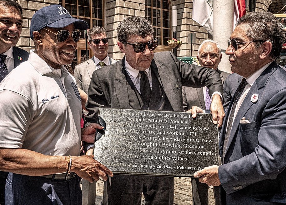 A plaque was delivered on the occasion of June 2, Italy's Republic Day, to commemorate Arturo Di Modica, the sculptor originally from Vittoria, Sicily, who is world famous for the Wall Street Bull. It was delivered into the hands of New York Mayor Eric Adams by Antonino Laspina, director of the Italian Trade Agency.