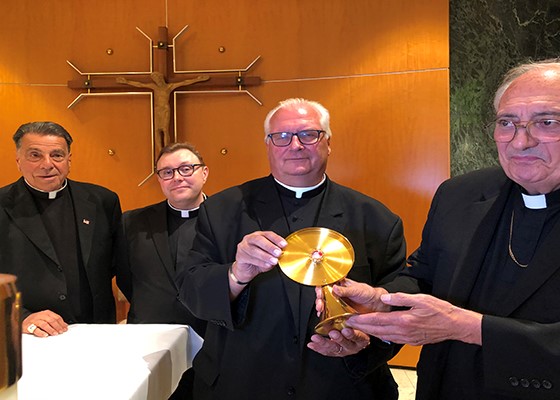 Msgr. Machalski got his wish July 14 when he went to the diocese chancery and watched as Bishop Nicholas DiMarzio officially accepted the first-degree relic of Acutis — tiny strands of his hair — that had been brought to the U.S. from Italy.