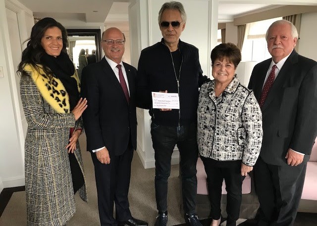 The Sons of Italy Foundation® (SIF), which is the philanthropic arm of the Order Sons and Daughters of Italy in America® (OSDIA), presented $100,000 in Central Italy earthquake relief to the Andrea Bocelli Foundation for the rebuilding of a kindergarten and elementary school in Muccia, a town located in the Marche region of Italy.