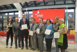 Katz presented citations of honor to five Italian Americans "in recognition of their outstanding contributions to the community": Dr. Robert Mangione, provost of St. John's University (third from l.); J. P. DiTroia, president of the U.S. Columbariam at Fresh Pond Crematory (fourth from l.); Italian-American leader Tony DiPiazza (fourth from r.); Carolyn Reres, state president of the New York Grand Lodge of the Order of Sons of Italy in America (third from r.); and Queens Poet Laureate Maria Lisella.